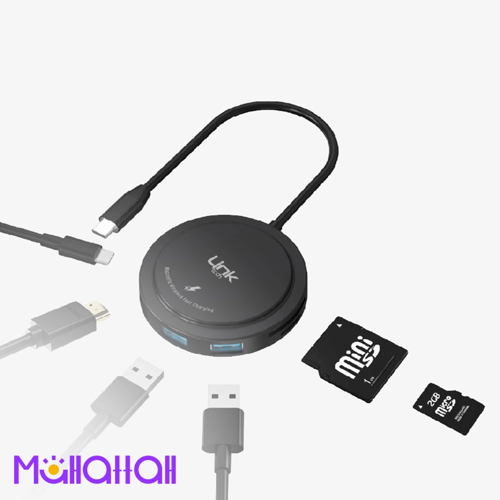 - لوحة شاحن لاسلكي A200 Premium 6 في 1 مع Hub Type-C وقارئ بطاقات.